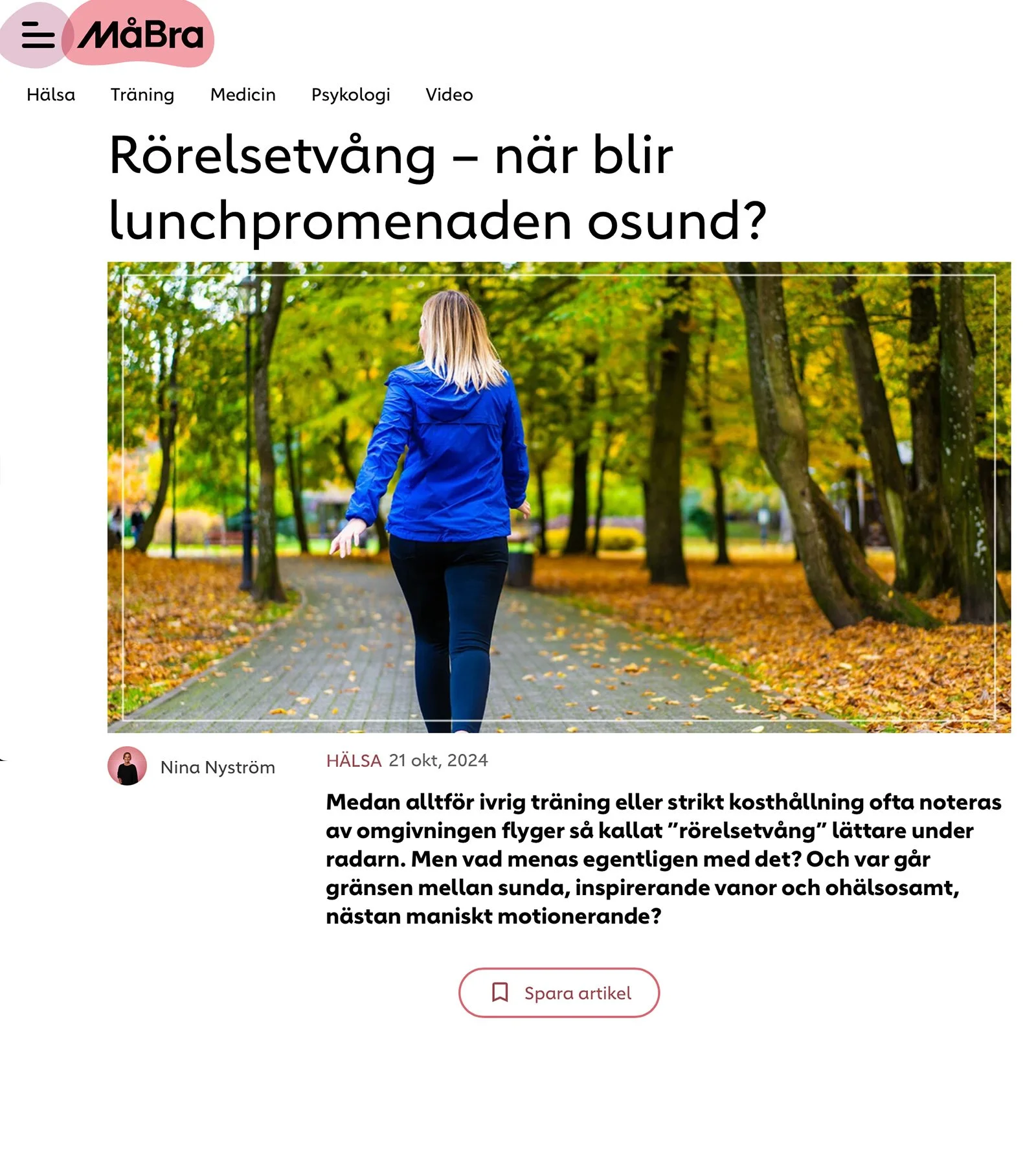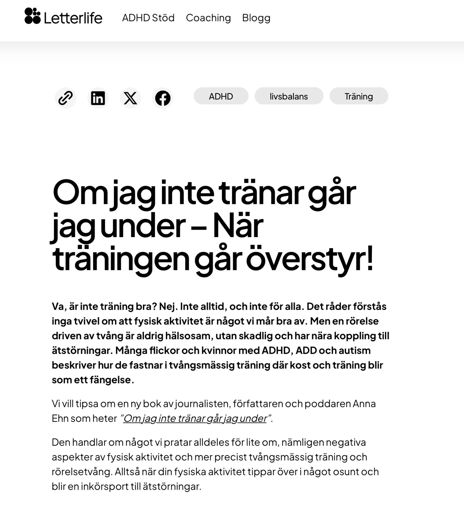 Material i samband med boken “Om jag inte tränar går jag under – rörelsetvång, ätstörningar och vägen till rörelseglädje” (läs mer om boken här):