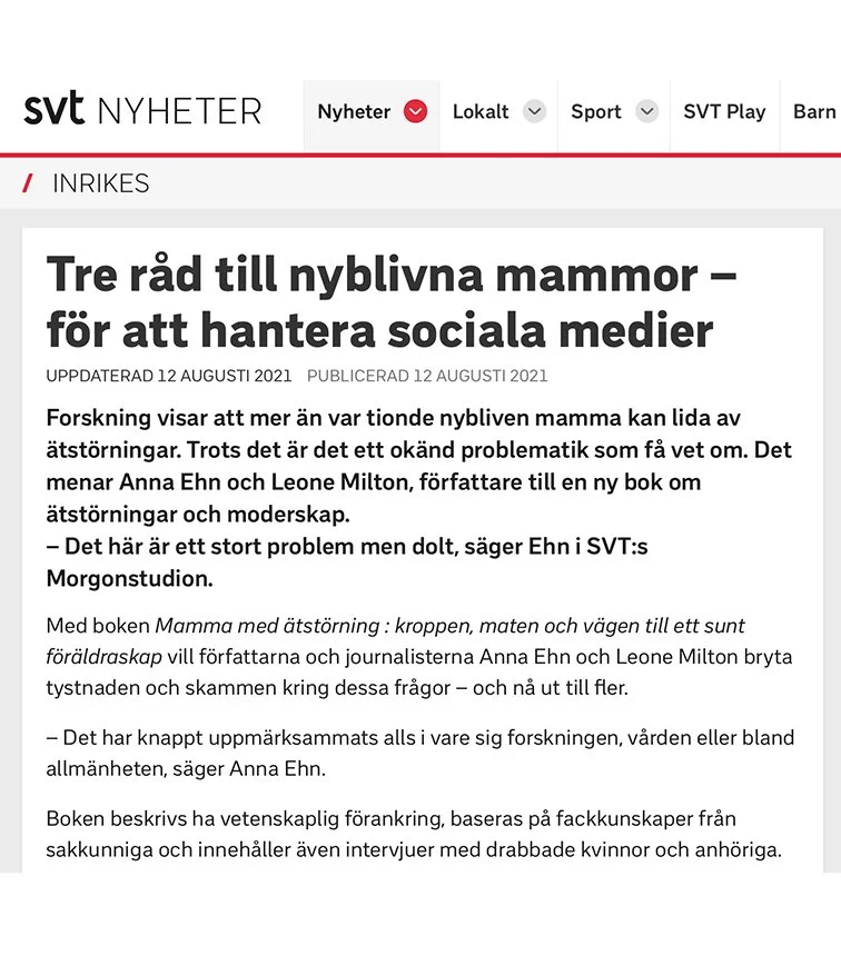 Material i samband med boken “Mamma med ätstörning – kroppen, maten och vägen till ett sunt föräldraskap” (läs mer om boken här):